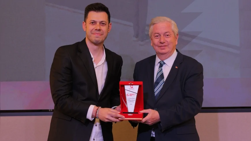 Prof. Dr. Sungurluoğlu, sağlık sisteminin görünmeyen ama çok önemli bir parçası olan veri giriş personeli Canberk Özata’ya ödül vermekten büyük mutluluk duyduğunu ifade etti: